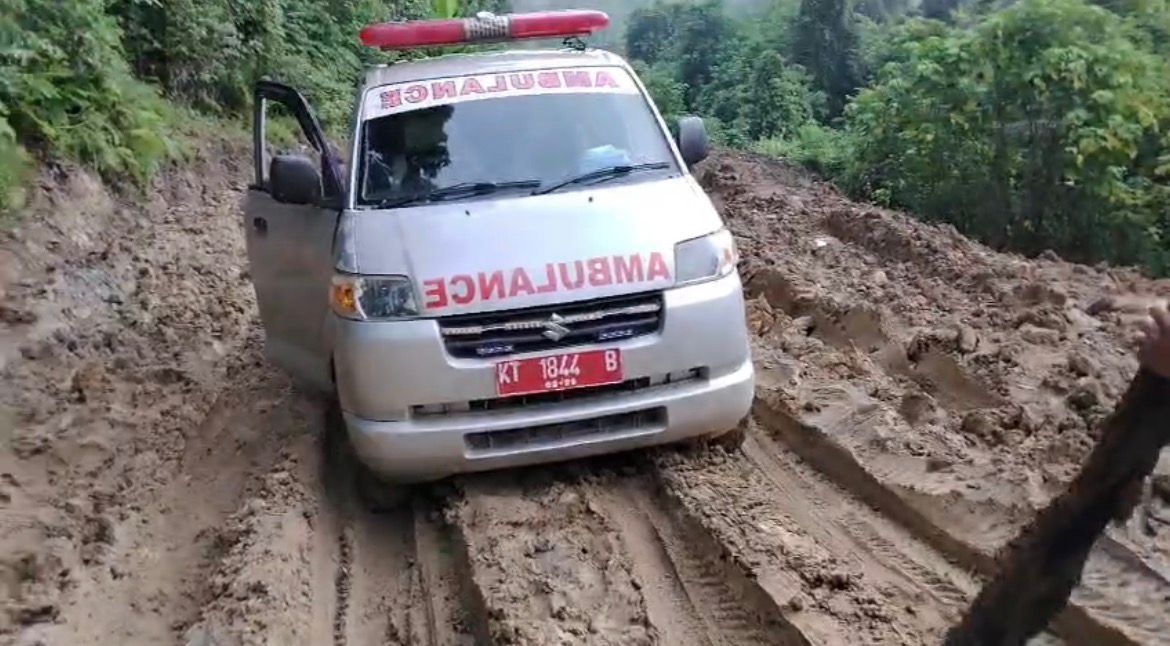 “Kondisi jalannya sangat parah, seperti bubur. Ambulans sampai harus ditarik beberapa kali supaya bisa naik di tanjakan,” ujar Mujadi saat dikonfirmasi.