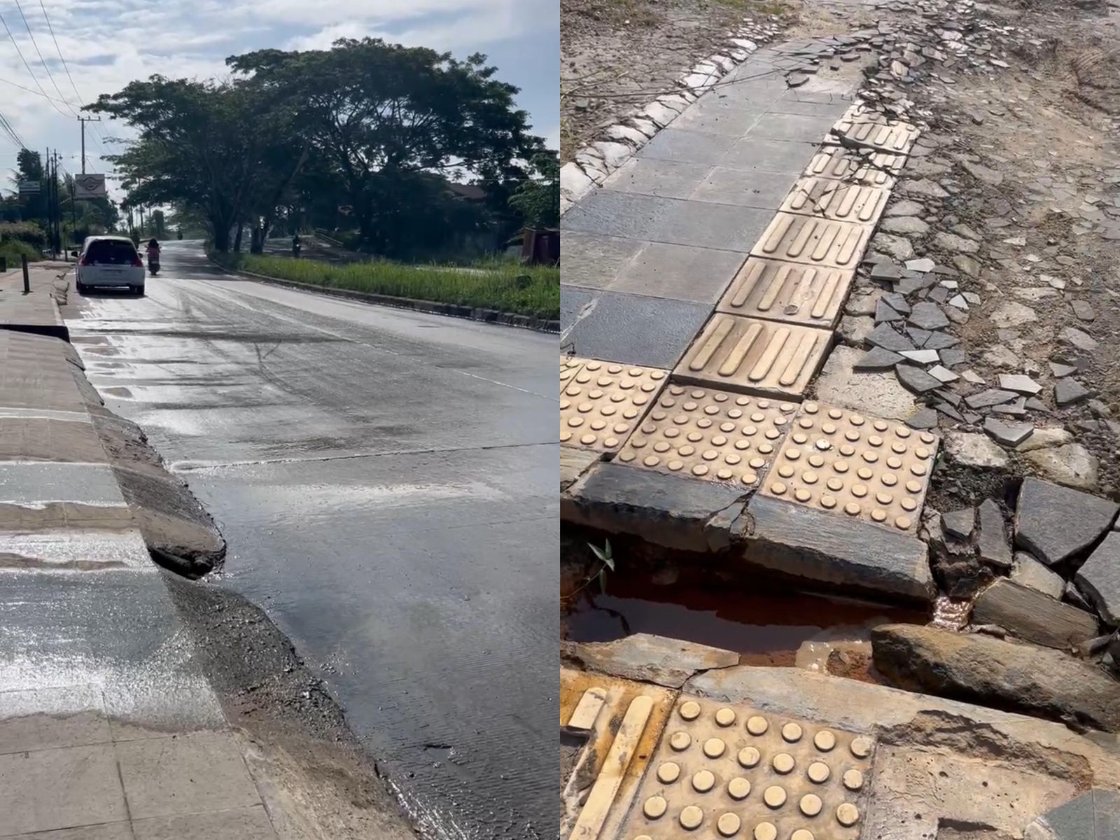 “Sudah sejak empat tahun lalu aku protes. Ada trotoar tapi tidak ada paretnya. Nah ini yang aneh, sebenarnya paret dulu kah atau trotoar dulu. Lihat kan akhirnya airnya malah ke jalanan,” tambahnya.