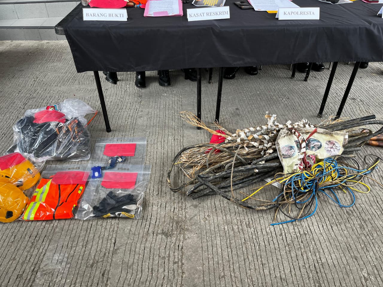 Barang bukti yang berhasil diamankan dari pelaku pencurian kabel jaringan telekomunikasi. (Foto: Ree/Kaltimetam.id)