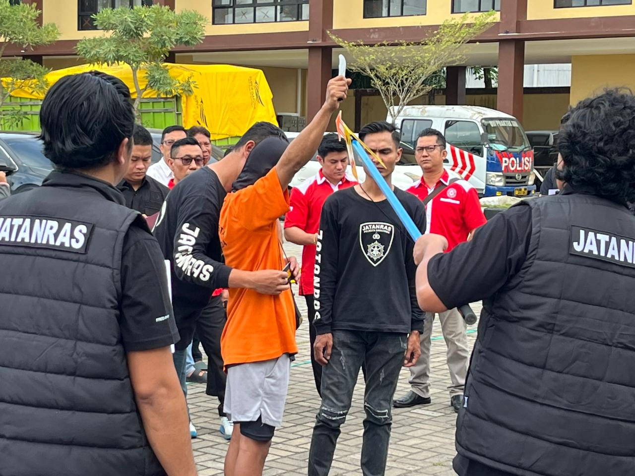Rekontruksi kasus penikaman dikawasan Gunung Manggah Samarinda. (Foto: Siko/Kaltimetam.id)