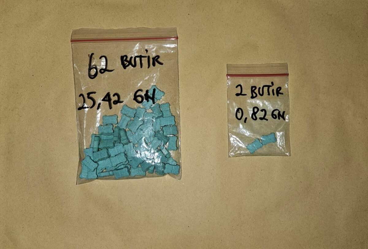 Saat dilakukan penggeledahan terhadap tersangka H, petugas menemukan puluhan butir pil ekstasi warna hijau yang disimpan di kantong depan celananya. Rinciannya, sebanyak 62 butir ekstasi dengan berat netto 25,42 gram serta dua butir tambahan dengan berat 0,82 gram. Seluruh barang bukti tersebut dikemas dalam plastik klip transparan.