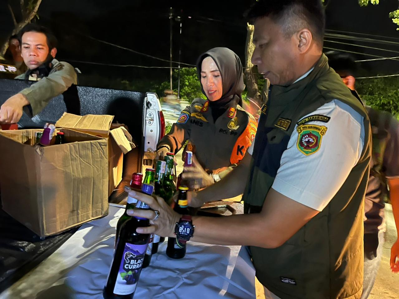 Dalam operasi tersebut, petugas menyisir sejumlah kafe yang berada di sepanjang ruas Jalan Kapten Soedjono. Hasil pemeriksaan menemukan lima dus miras dari berbagai merek. Minuman keras tersebut tidak disimpan di dalam bangunan kafe, melainkan disembunyikan di area belakang, tepatnya di semak-semak dan kawasan hutan kecil untuk menghindari razia petugas.