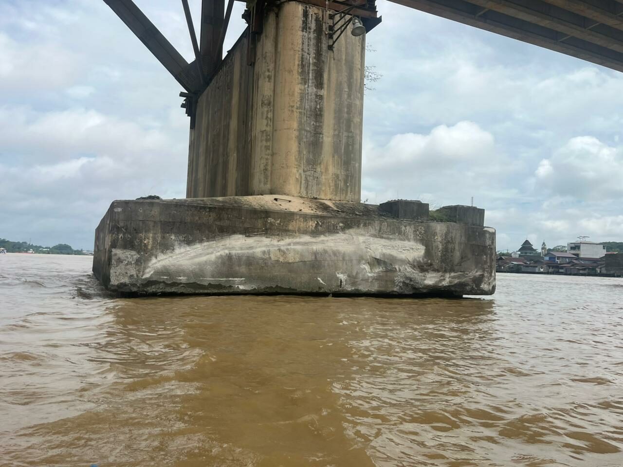 Dari hasil pengecekan awal di lapangan, benturan diduga mengenai salah satu pilar utama jembatan. Meski belum dipastikan secara teknis, pilar yang terdampak disebut berada di bagian tengah jembatan.